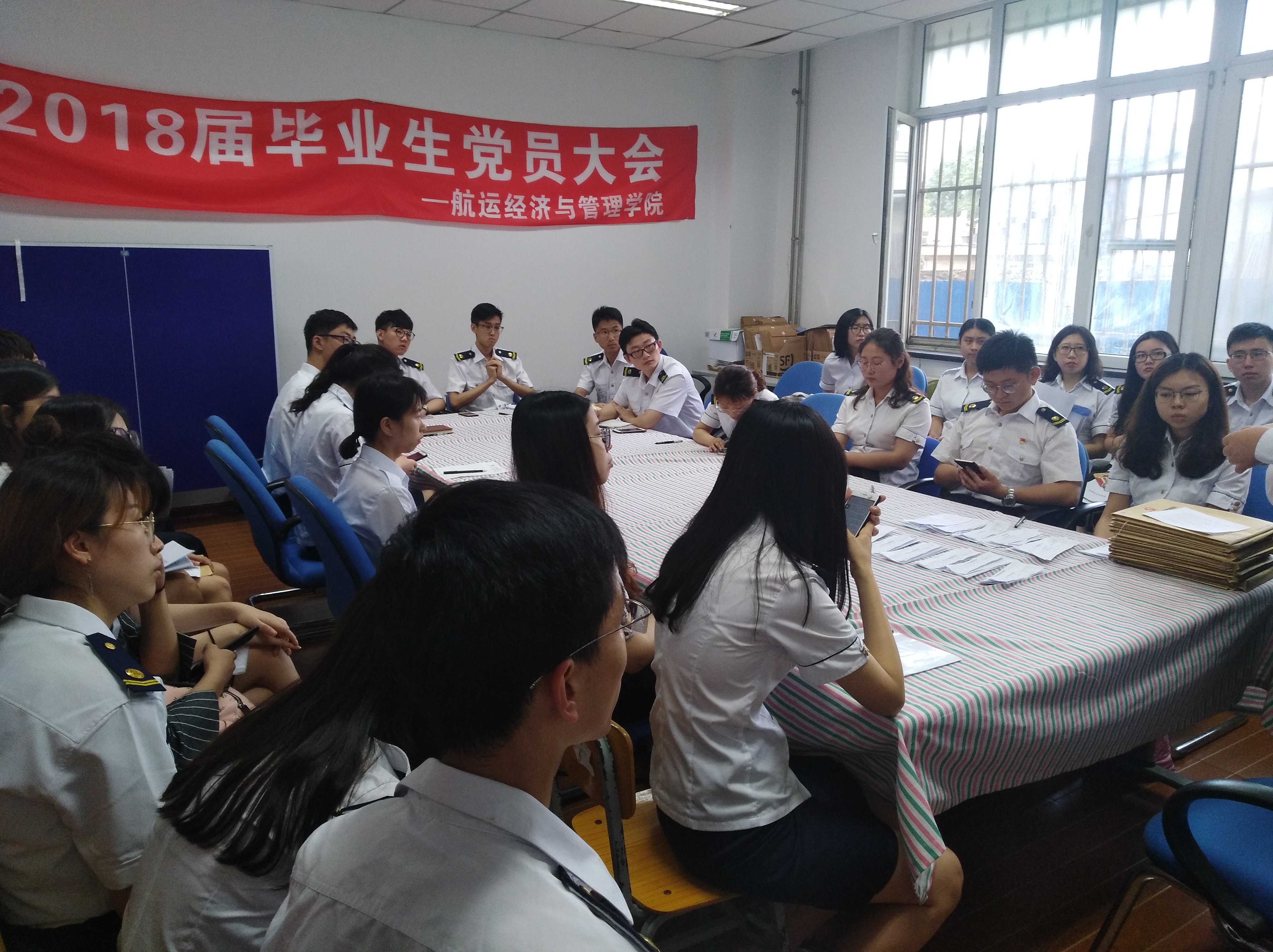 在英华一公寓党员活动室召开了2018届毕业生党员大会。各毕业中队党支部书记、全体毕业生党员参加了大会,会议由陈泽羽主持。